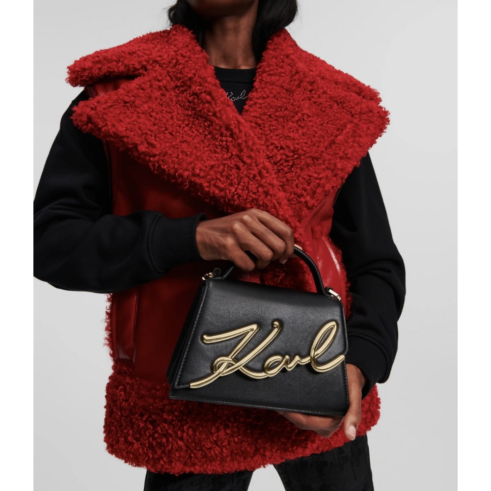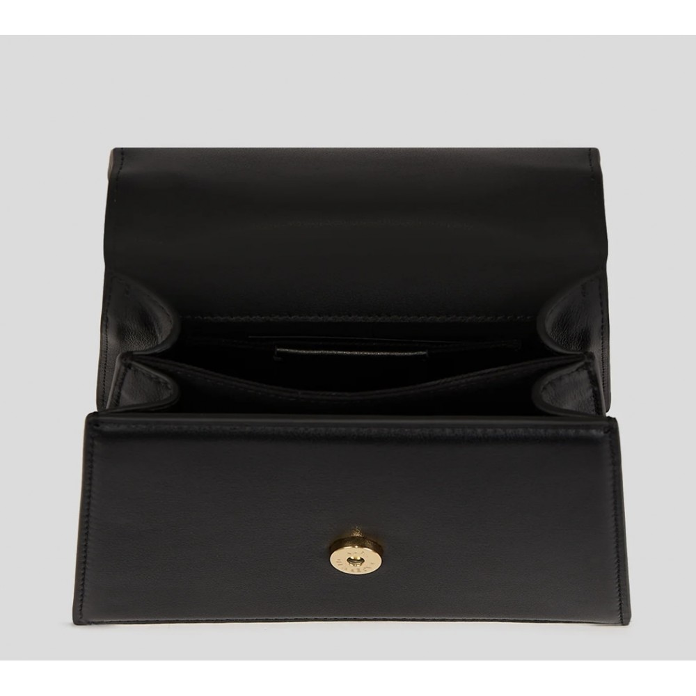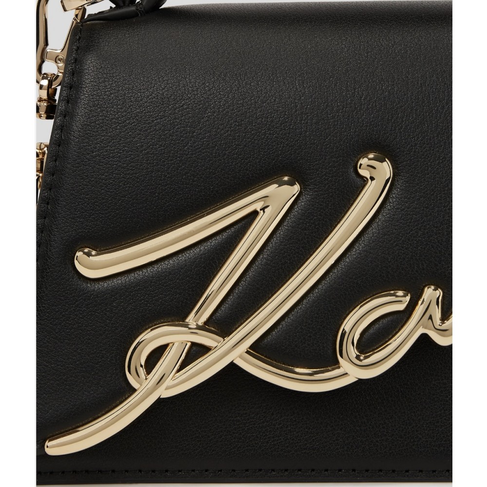 Le petit sac bandoulière K/SIGNATURE se démarque avec sa silhouette trapèze et son logo en biais sur la fermeture à rabat. Indéniablement chic et toujours pratique, cet accessoire raffiné dispose d'une chaîne amovible et d'une sangle en cuir lisse pour un style polyvalent.
