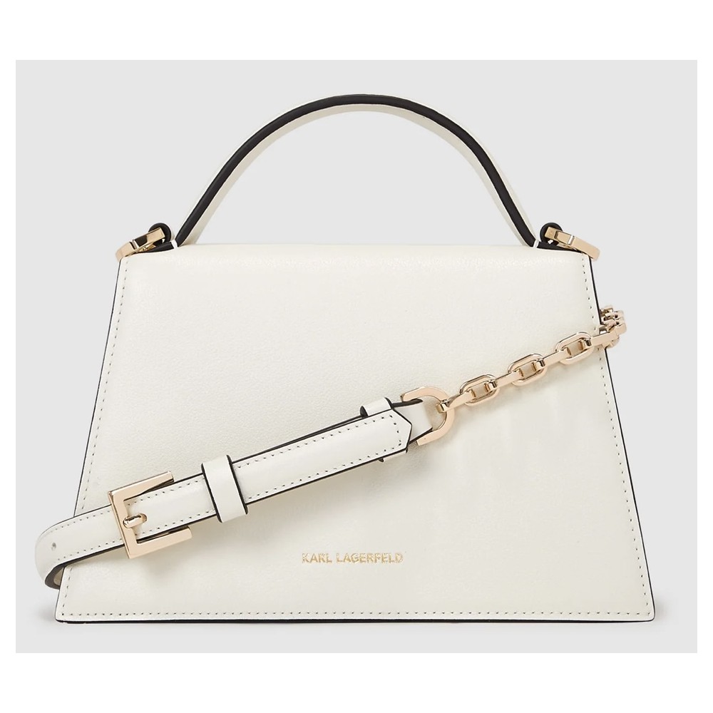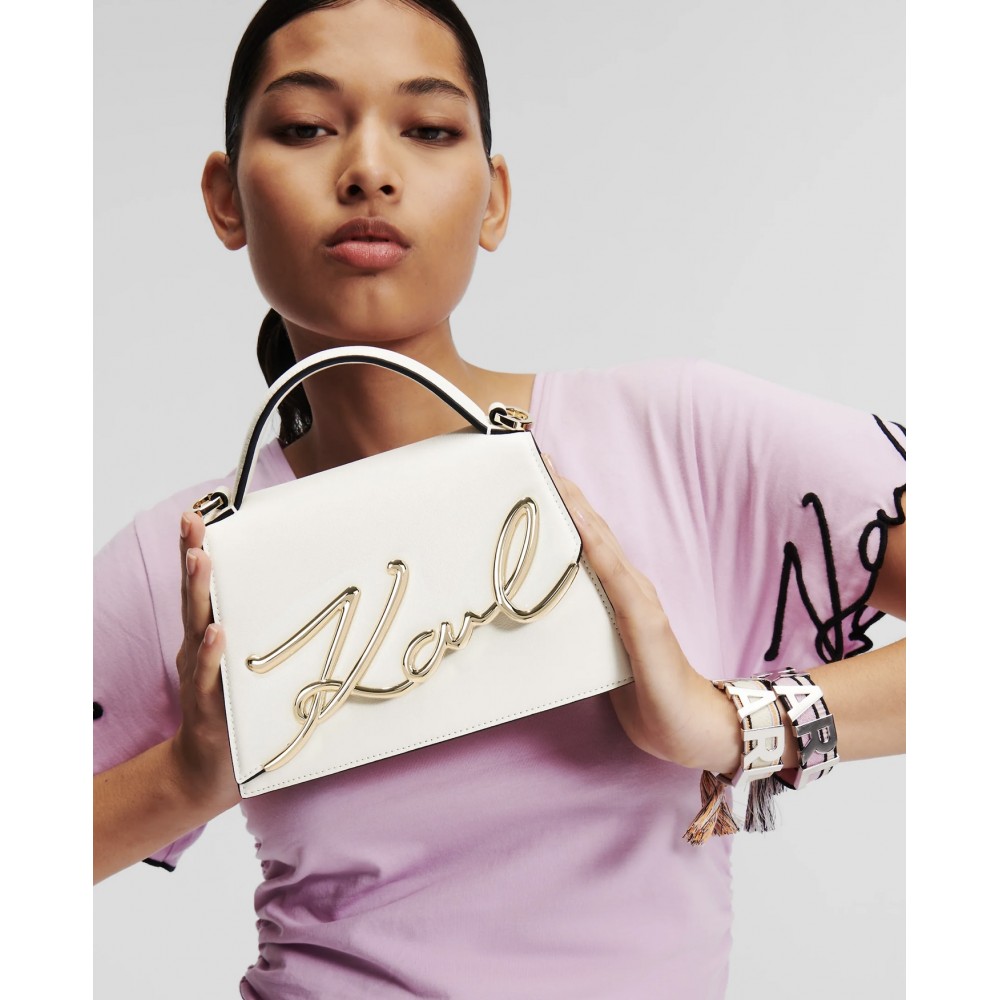 Le petit sac bandoulière K/SIGNATURE se démarque avec sa silhouette trapèze et son logo en biais sur la fermeture à rabat. Indéniablement chic et toujours pratique, cet accessoire raffiné dispose d'une chaîne amovible et d'une sangle en cuir lisse pour un style polyvalent.