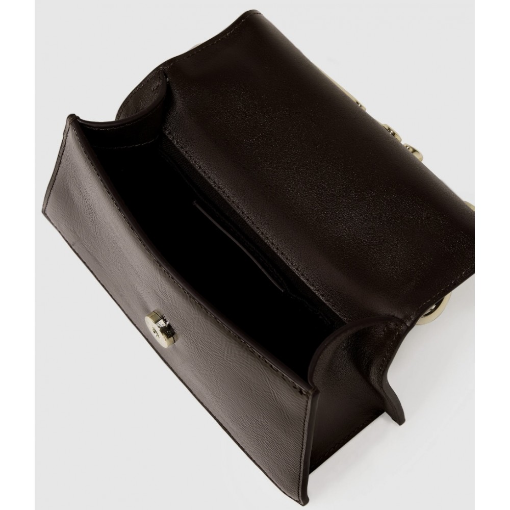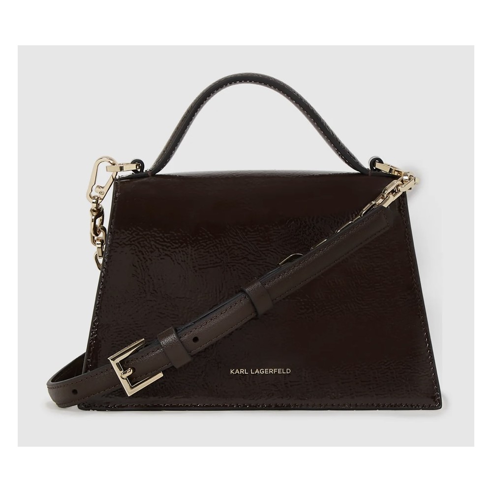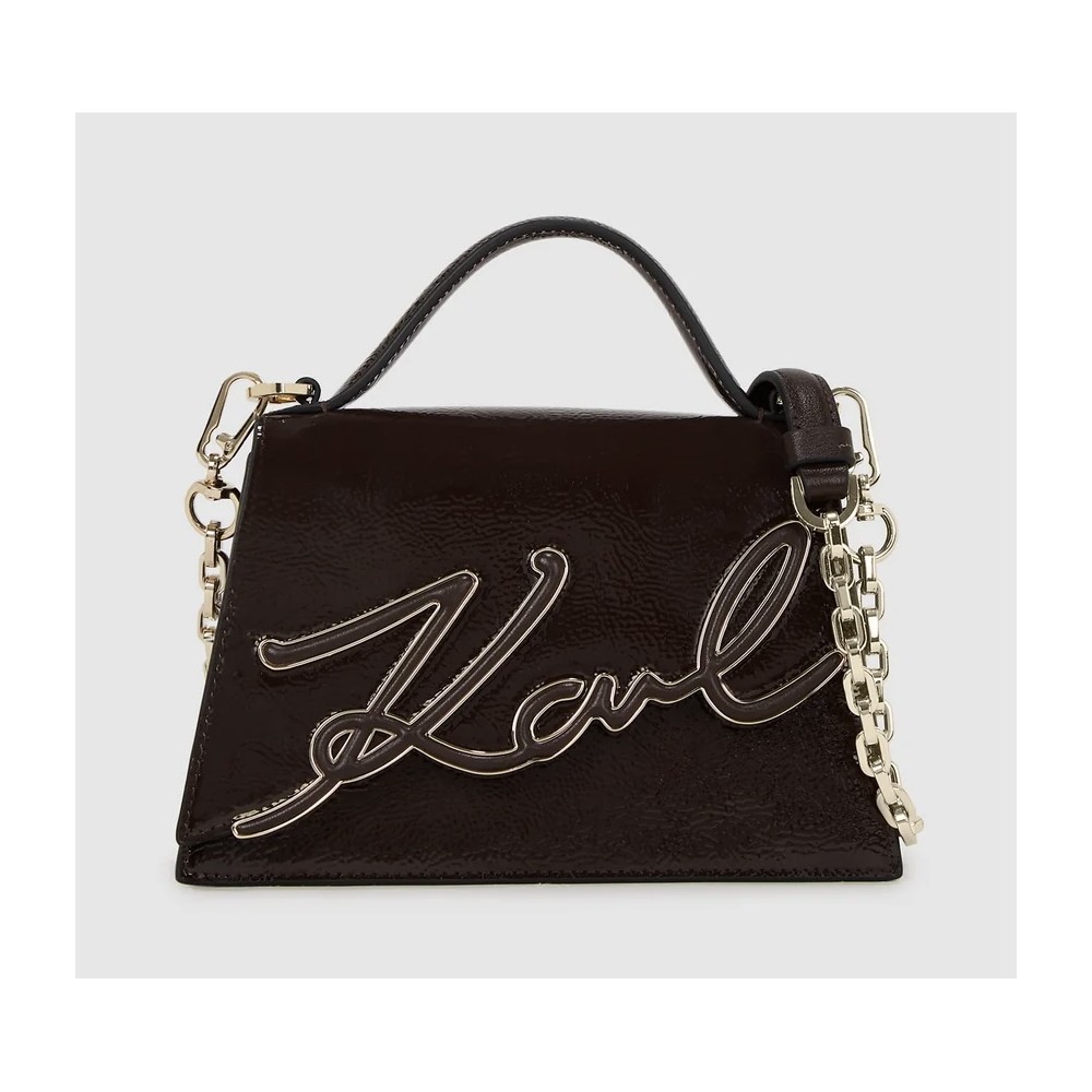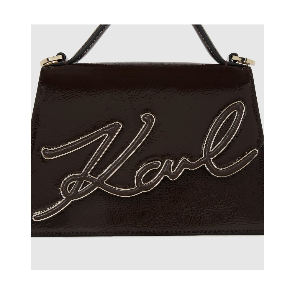 D'élégants détails en métal Karl Signature ornent la fermeture de ce sac bandoulière stylé. Cet accessoire tendance fabriqué dans un cuir brillant dispose d'une poignée supérieure et d'une sangle amovible avec des détails en chaîne, lui ajoutant une touche rock-chic.